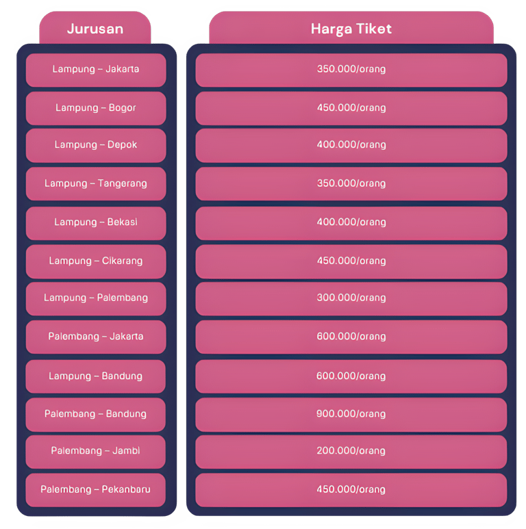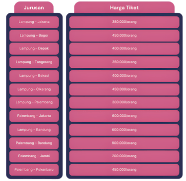 Rute tetap dengan keberangkatan tepat waktu setiap hari.